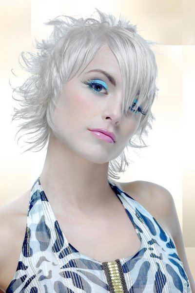 Die Mischung aus langem, fransigem Pony und wuscheligen Haaren am Nacken sowie an den Seiten ist kompromisslos charmant. Das pfiffige Flair dieser coolen kurzen Haare wird durch eine erdbeer- oder weißblonde Färbung verstärkt.