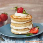 Für die Pancakes: 120 ml Milch | 20 Gramm Whey-Proteinpulver mit Schokoladengeschmack | 1 TL Kakao doppelt entölt | 50 Gramm Mandelmehl | 1 Ei | eine Prise Zimt | einen Prise Steinsalz | 1 EL Pflanzenöl zum Braten Für das Topping: 2 EL Joghurt | 1/2 TL Puderxylit | ein Spritzer Zitronensaft