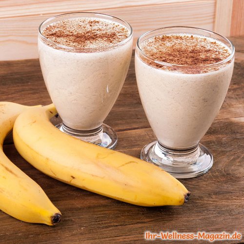 Tipp: Wenn es einmal schokoladiger sein soll, dann mixen Sie einfach einen Teelöffel doppelt entölten Kakao direkt mit in den Shake. Auch das Mark einer Vanilleschote harmoniert exzellent mit Banane und Zimt.