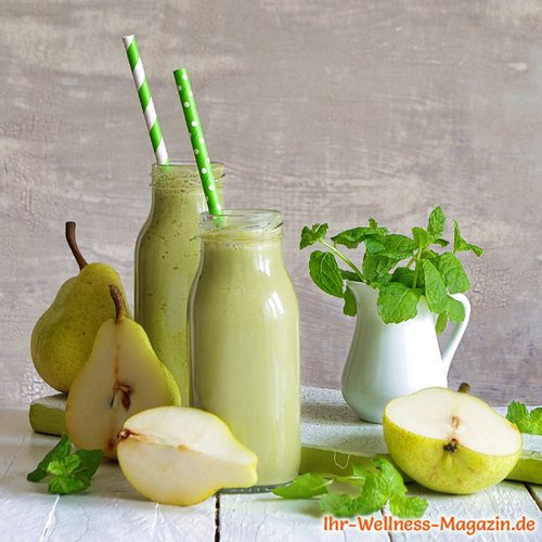 Tipp: Sie können dem Shake auch immer wieder neue Aromen beimischen. Ersetzen Sie doch die Minze durch Melisse oder geben Sie zusätzlich etwas Basilikum hinzu. Auch können Sie statt Birne Apfel oder Guave verwenden. So zaubern Sie immer wieder neue Geschmacksrichtungen und die gesunde Ernährung wird dadurch nicht langweilig.
