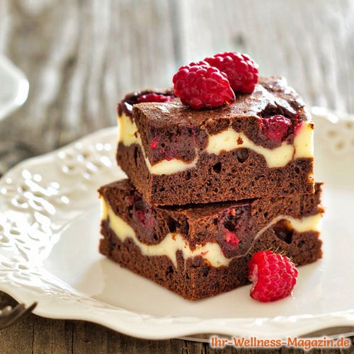 Low-Carb-Cheesecake-Brownies mit Himbeeren