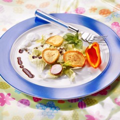 Kartoffel-Blini mit Eisberg-Mais-Salat