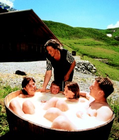 Oder man wählt schlichtweg die klassisch-traditionelle Variante für die ganze Familie mit einem Molkebad unter freiem Himmel - für Spaß und Entspannung ist auf jeden Fall gesorgt.